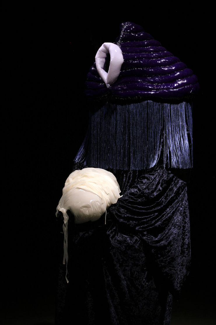 2 sculptures, fumées, tissus, resine, nouille de haricots mungo, moules.
